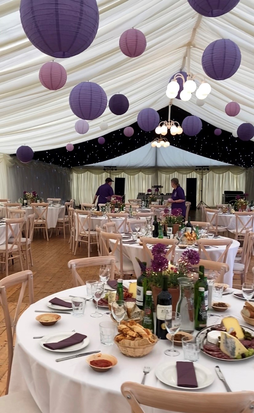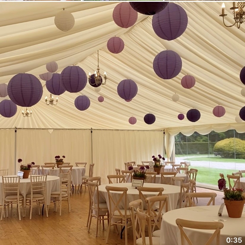 We were delighted to be asked again to supply our range of lanterns for the GORDONSTOUN Leavers evening -- May 2022.Displaying the school colours Purple/ Lavender & White.
